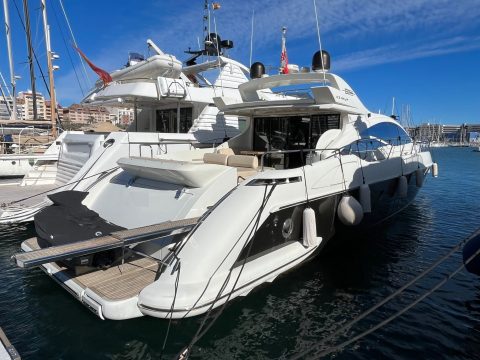 Azimut 68S de 2004, 2365 horas de motor y bandera polaca. IVA e impuestos de matriculación española pagados. Homologado para 12 personas. Jet Ski no incluido en precio.