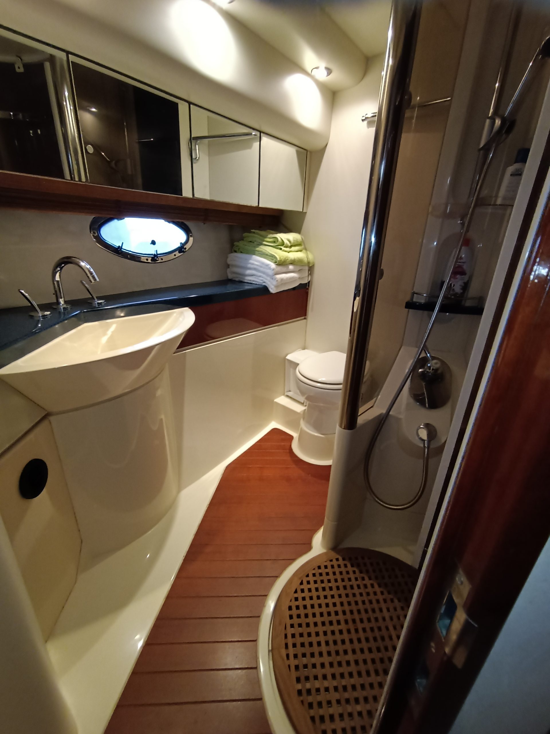 - Camarote de armador con cama doble, 2 camarotes de invitados con 2 camas, 2 baños completos con mamparas de ducha,
