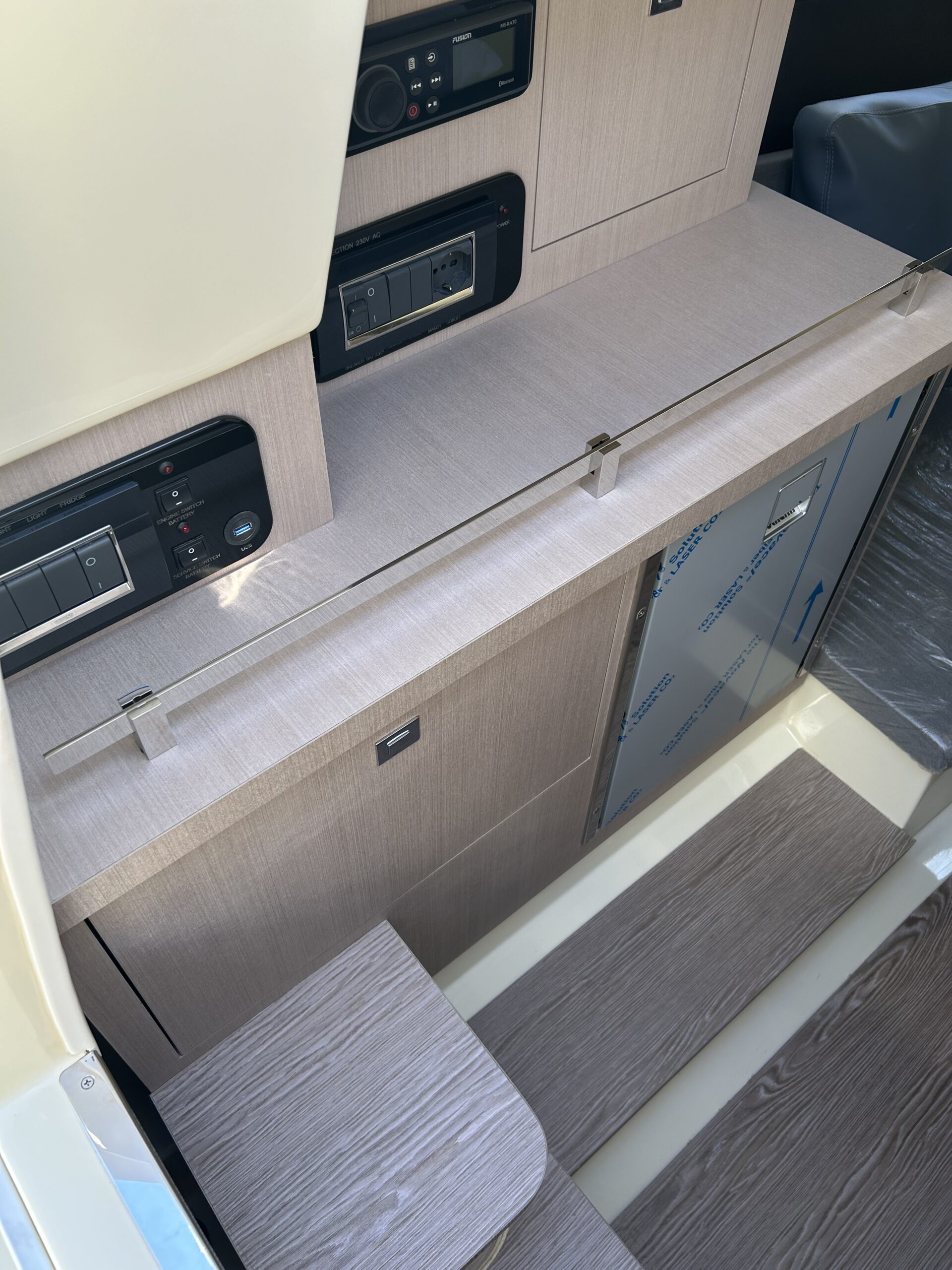 - Zonas de estiba en bañera en laterales de cubierta