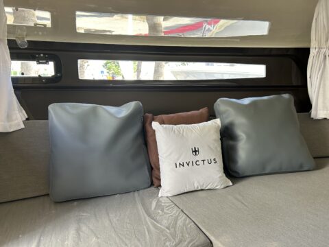 This is the first model launched by the INVICTUS YACHT shipyard and its designer Christian Grande,characterized by its inverted bow. The choice of this particular configuration introduces an increase in volume and waterline that translates into greater stability. Pioneer in its design, discover with us the luxury of sailing